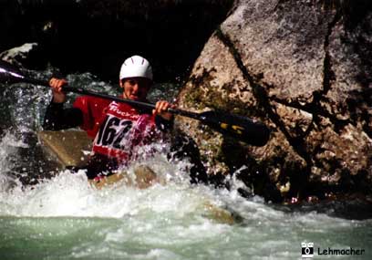 Thomas Koelmann brauchte einen langen Anlauf zur Weltspitze. Damit sich der Weg lohnte, gewann er konsequenterweise die entscheidenden Titel der letzten vier Jahre. Die erste WM Teilnahme war für ihn 1991. Welche Möglichkeiten er hatte, erkannten die Letzten 1995, als er die Bronzemedaille gewann. Als weitere Indizen für seine Leistungsfähigkeit gelten die Siege bei allen WM-Qualifikationen seit 1993. Auf der WM 96 stabilisierte er die Leistung mit einem sechsten Platz, um dann im darauf folgendem Jahr bei der EM auf der Isere endlich den Knoten platzen zu lassen. Thomas Konzentration auf den Saisionhöhepunkt hat fast etwas beängstigendes. Die Periodisierung seines Trainings ist exellent. Sein Style ist ruhig und kraftvoll. |